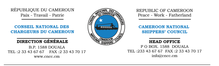 Le Directeur General du Conseil National des Chargeurs du Cameroun (CNCC) porte à la connaissance des entrepreneurs et opérateurs économiques Camerounais, qu'il est organisé dans le cadre du projet de renforcement de la...